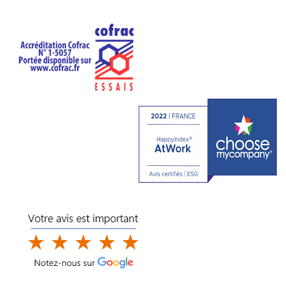 Les compétences du laboratoire sont reconnues par le Comité Francais d’Accréditation (COFRAC). Pour plus d’informations sur la portée de notre accréditation demandez notre attestation ou rendez vous sur cofrac.fr